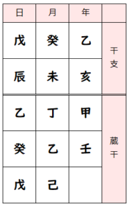 ・命式図の『干支』の干と蔵干で占います