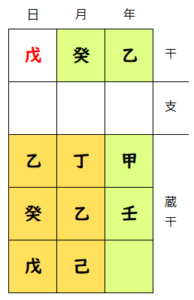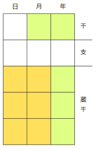 命式図の干と蔵干に