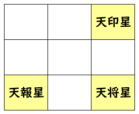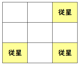十二従星は以下の位置に配置されます。
